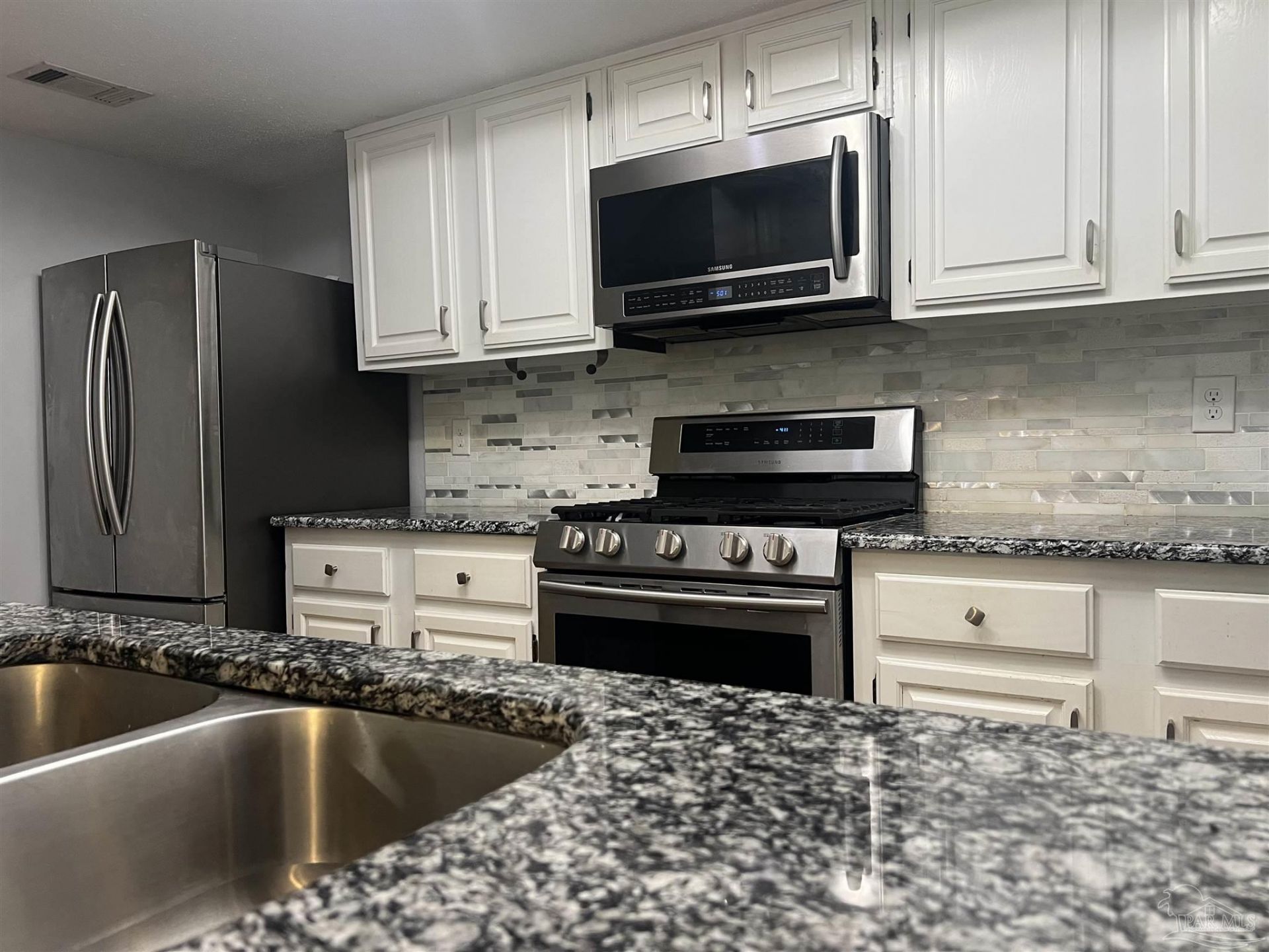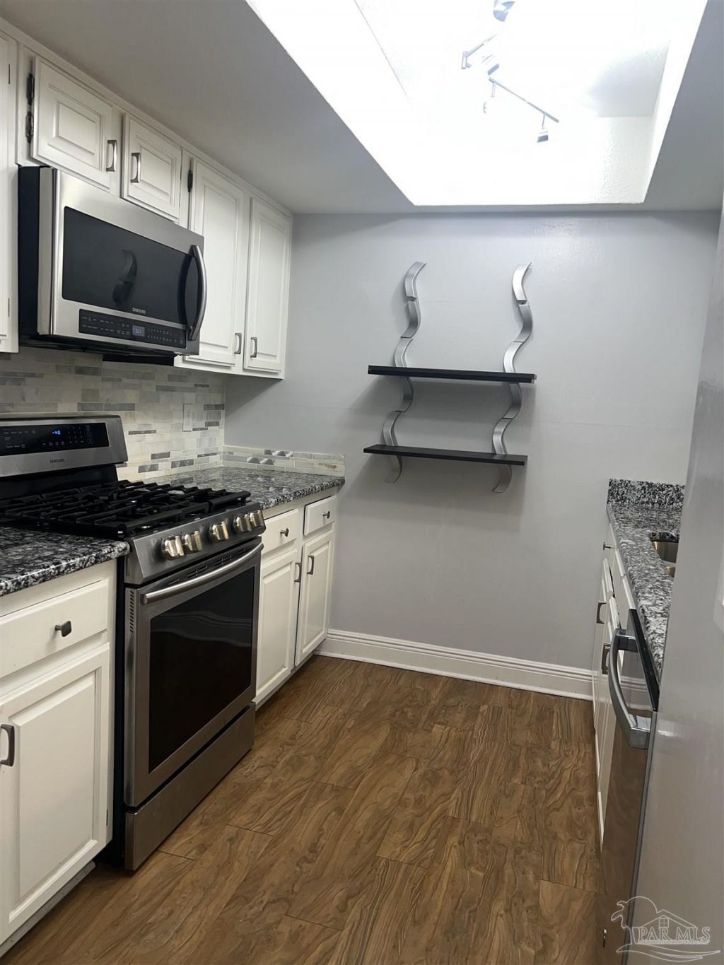 Back on the market - no fault of the property: Check out this updated end-unit townhome in NE Pensacola! Convenient to schools, shopping & interstate. Formal living and separate family/dining rooms with wood-like plank flooring. Granite kitchen w/ 5-burner gas range, built-in microwave, ultra-quiet dishwasher, pantry, & fridge with bottom freezer. Powder room/half bath conveniently located downstairs. Large rear family room opens to inside laundry & covered back patio and yard. Upstairs main bedroom has 2 closets & private bath with tile, dual shower heads, glass doors, cultured marble top, & furniture-grade vanity. Two guest BRs with wood-like...read more